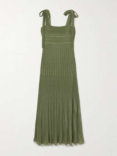 Zimmermann's 'Wanderlust' maxi dress looks so gorgeous under the light – it's flecked with glinting metallic threads. It has a close-fitting, ribbed-knit bodice before fanning out at the hips and falling through a loosely pleated skirt. If you hair is long, sweep it back to showcase the bow-tied straps.