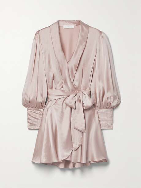 Zimmermann's wrap dress is one of the brand's most recognizable styles. Cut from lustrous silk-satin for a fluid drape, this blush version has a flouncy hem and sash belt to define the waist. Wear yours to dinner with strappy sandals and a small clutch.