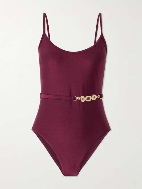 The slim belt on Zimmermann's 'Awaken' swimsuit gives the simple style a subtle retro feel. It's made from smoothing stretch fabric and has a scoop neck and high-cut legs. Match your jewelry to the gold-tone hardware.