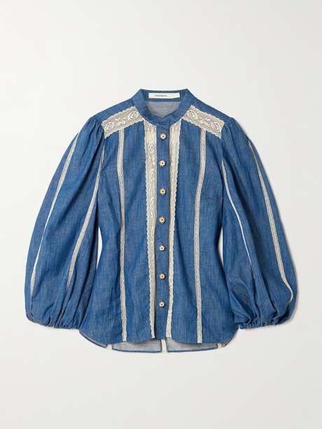 ZIMMERMANN Awaken lace-trimmed denim shirt