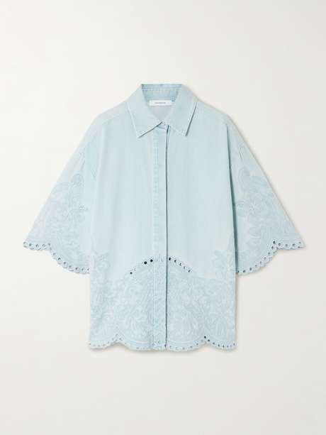 Trust Zimmermann to make denim feel delicate and romantic. This 'Daylight' shirt is made from denim with broderie anglaise detailing the sleeves and hem.