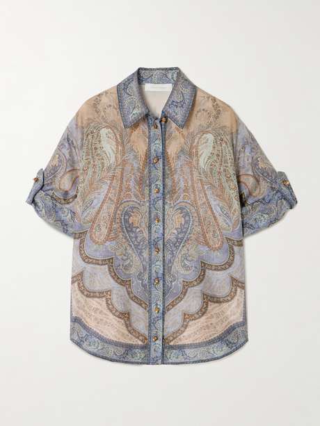 Classic Zimmermann, this 'Wanderlust' shirt is cut from smooth silk printed with bohemian paisley swirls. It's tailored with pre-rolled sleeves and fastens with decorative embellished buttons that you'll want to coordinate your jewelry with.
