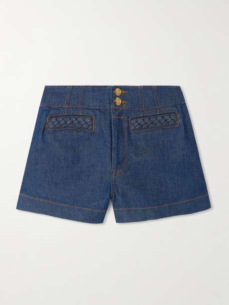 Zimmermann's 'Awaken' shorts are designed to sit high on the waist and detailed with intricately engraved gold-tone buttons. They're made from dark-blue denim and feature braiding on the pockets.