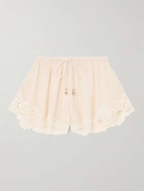 Zimmermann's shorts fall to lace-trimmed hems, giving them such a romantic feel. They're cut from cotton and silk-blend crepe and are threaded with drawstrings with trinkets at each end.