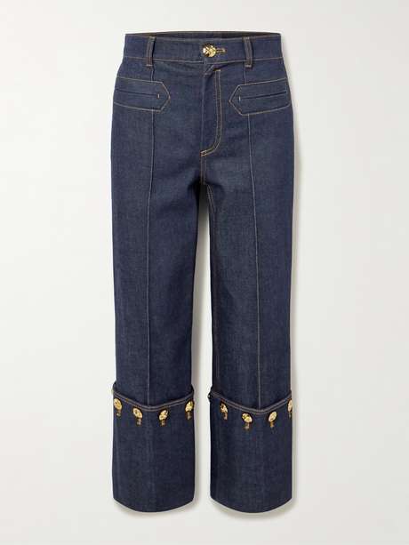ZIMMERMANN Rebellion embellished cropped mid-rise straight-leg jeans