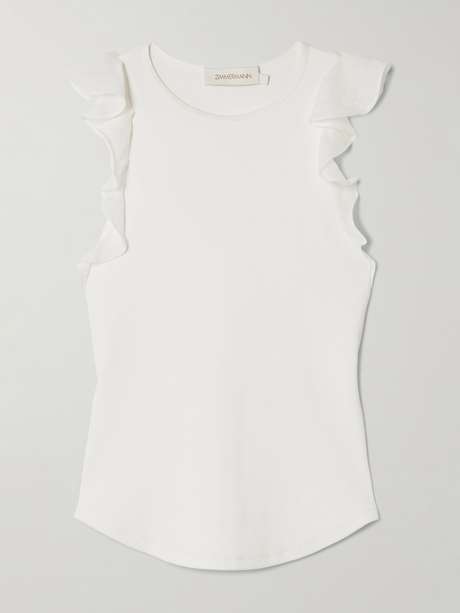 Delicate ruffles trace the sides of Zimmermann's 'Awaken' tank. Otherwise quite simple, it's made from cotton-blend jersey that's ribbed for a close fit.