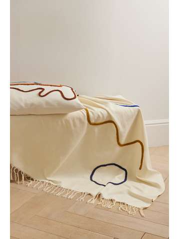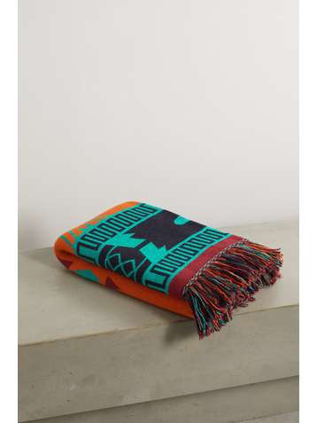 Fringed jacquard-knit wool and cashmere-blend blanket
