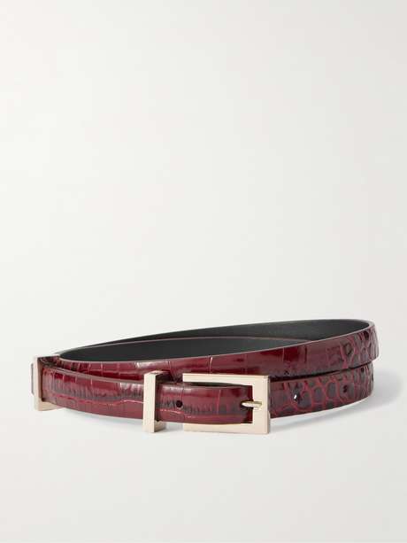 TOM FORD's belt is made from glossy patent-leather with croc-effect scales and a polished gold-tone buckle. It's slim enough to loop through the waistband of your jeans or tailored pants.