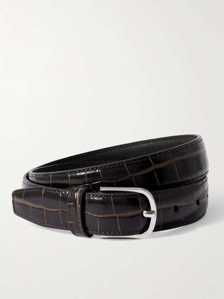 Upgrade any outfit with TOTEME's belt. It's made from brown croc-effect leather with a silver-tone buckle that's engraved with the label's name. The simple design means it can be styled with almost anything.