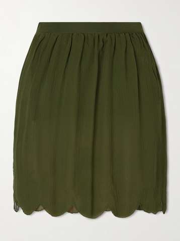 Mini-jupe en crépon de soie à festons et à fronces Mab