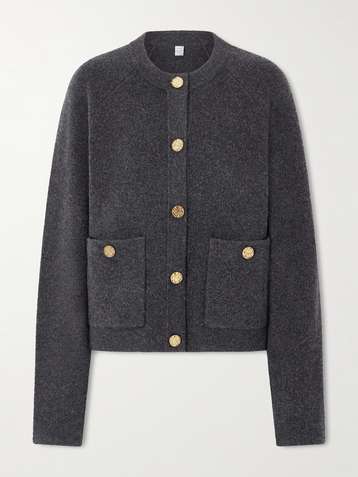 Cardigan en cachemire et laine mélangés côtelés