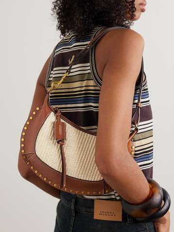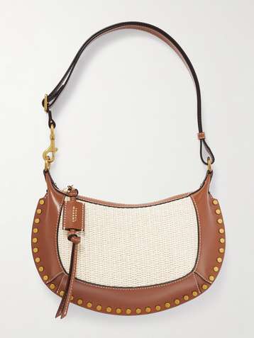 Sac porté épaule en raphia à finitions en cuir et à clous Oskan Moon