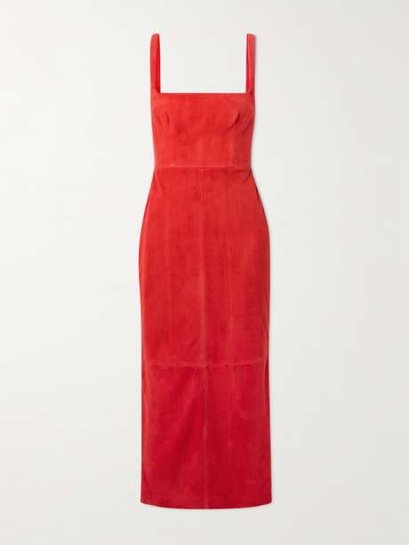 Cette robe Alex Perry illustre tout le savoir-faire de la marque. Elle est réalisée en daim, présente un élégant décolleté carré et possède une jupe près du corps dont les empiècements créent du contraste. Sa fente arrière vous offrira, quant à elle, une plus grande liberté de mouvement.