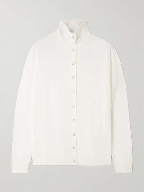 Ce cardigan Allude, un indispensable du quotidien, est particulièrement facile à associer. Il est tricoté en laine et doté d’un col montant côtelé à boutons ; défaites-en quelques-uns pour moduler sa silhouette.
