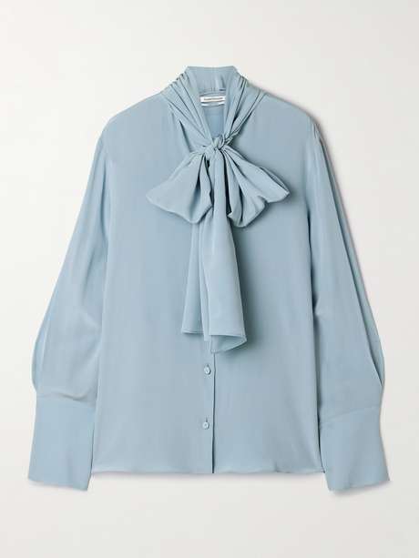 L’utilisation de matières réfléchies est au cœur des collections d’Another Tomorrow. Ce chemisier en crêpe de Chine, par exemple, se compose de soie sauvage qui a été produite de façon non-invasive et sans pesticides nocifs. Il adopte une coupe ample, et possède un élégant nœud lavallière ainsi que des manches bouffantes.