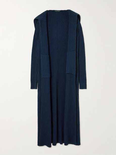 La collection automne-hiver 2025 de Balenciaga met l'accent sur le confort en revisitant les basiques grâce à l'approche conceptuelle caractéristique de la maison. Ce cardigan a été confectionné en Italie à partir de mailles côtelées et présente une silhouette longue qui atteint presque le sol.