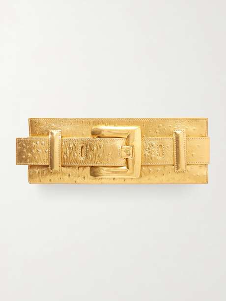 BALMAIN Pochette en cuir métallisé effet autruche à boucle Anthem