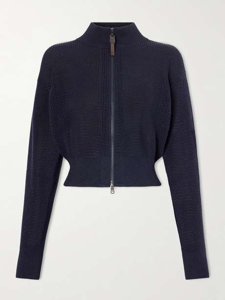 BRUNELLO CUCINELLI Cardigan en coton mélangé à ornements et à fermeture à glissière