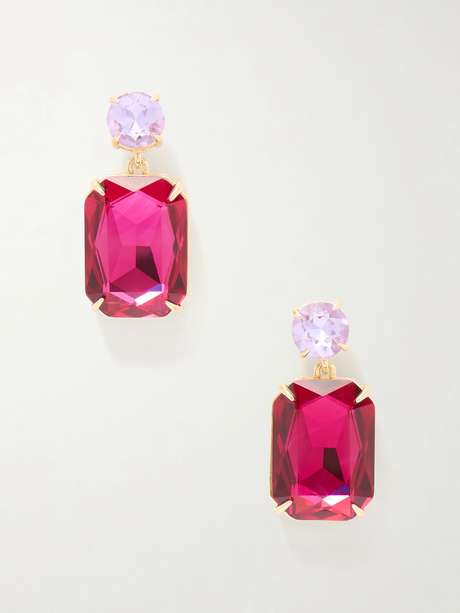 Avec leur silhouette allongée, ces pendants d'oreilles Carolina Herrera sophistiqueront aussi bien vos tenues de soirée que vos looks de journée élégants. Ils sont réalisés en laiton doré et sertis de cristaux colorés qui se balanceront au rythme de vos mouvements en reflétant la lumière.