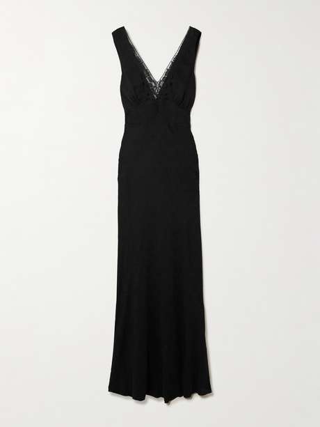 La collection hiver 2025 de Chloé regorge de robes du soir au romantisme rétro et à l’esprit lingerie. Celle-ci est réalisée à partir d’un jacquard de soie fluide et parée de délicates finitions en dentelle au niveau des bonnets. Portez-la avec des bijoux dorés et une paire de ballerines.