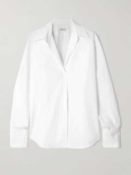 Cette chemise Dries Van Noten est dotée d’une patte de boutonnage partiellement ouverte qui mettra en valeur votre décolleté. Elle est confectionnée à partir d’une popeline de coton légère et agrémentée de surpiqûres géométriques au niveau du col et des poignets. Grâce à sa coupe légèrement ample, elle se portera aussi bien par-dessus un jean que rentrée à l’intérieur de la taille de ce dernier.