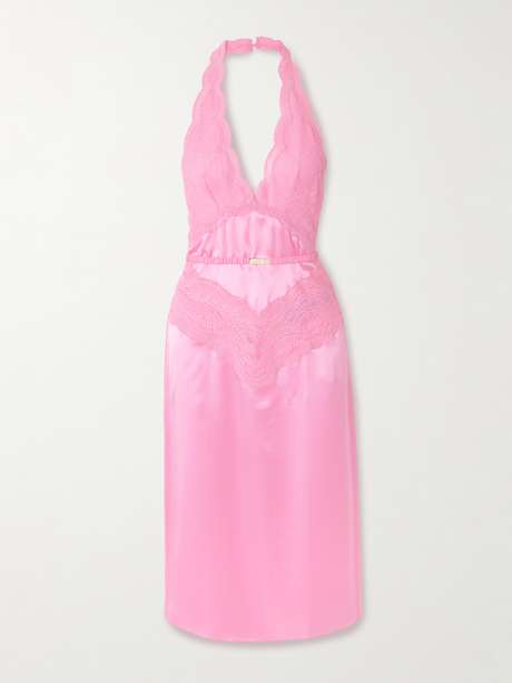 Cette robe signée Gucci est coupée dans le biais à partir d’un satin de soie rose bonbon, et présente un séduisant dos nu. Elle est agrémentée d’empiècements en dentelle romantiques, et dotée d’un décolleté plongeant. Sa ceinture élastique froncée est amovible et ponctuée d’un ornement griffé au centre.