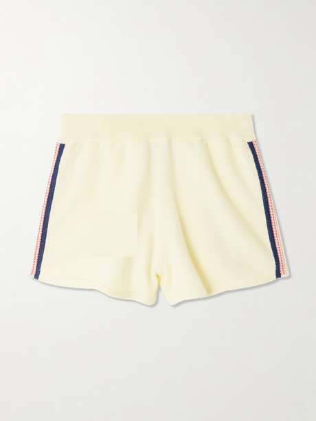 Ce short signé Guest In Residence est une relecture originale des modèles de running. Il est réalisé en coton et en cachemire mélangés jaune pastel et s’habille de rayures sur les côtés. Associez-lui un cardigan et des mocassins à l’allure preppy.