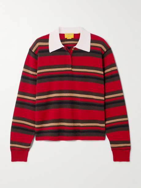 Ce polo Guest In Residence, inspiré des maillots de rugby traditionnels, est habillé de rayures colorées horizontales et possède un col contrastant. Il est réalisé en cachemire, adopte une coupe décontractée et présente trois boutons effet écaille dissimulés. Avec son ourlet légèrement raccourci, il sera du plus bel effet associé à un pantalon taille haute.