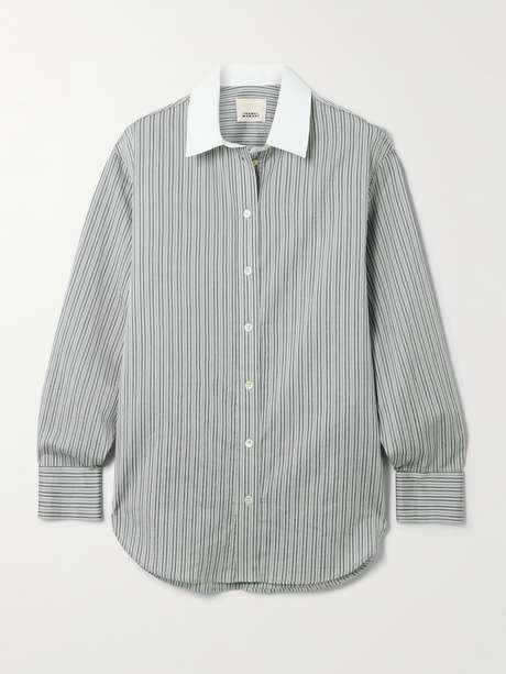 Isabel Marant explore la juxtaposition des codes masculins et féminins pour l'automne-hiver 2025. La chemise Fabrilane est confectionnée en serge de coton et de soie mélangés habillée de rayures et pourvue d’un col blanc épuré contrastant. Laissez quelques-uns de ses boutons brillants défaits pour un look plus décontracté.