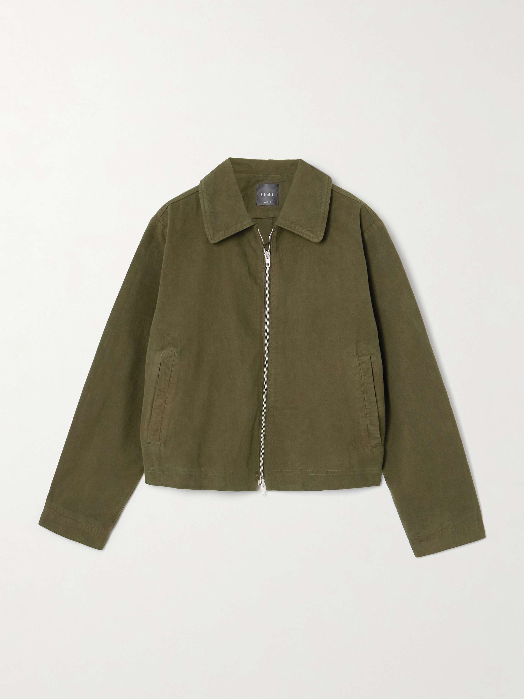 Cette veste facile à associer de LESET sera parfaite pour la mi-saison. Elle est réalisée en toile de coton, adopte une coupe ample légèrement raccourcie, et présente un col soigné ainsi qu'une fermeture à glissière double curseur. Complétez l'ensemble avec le pantalon assorti de la marque.