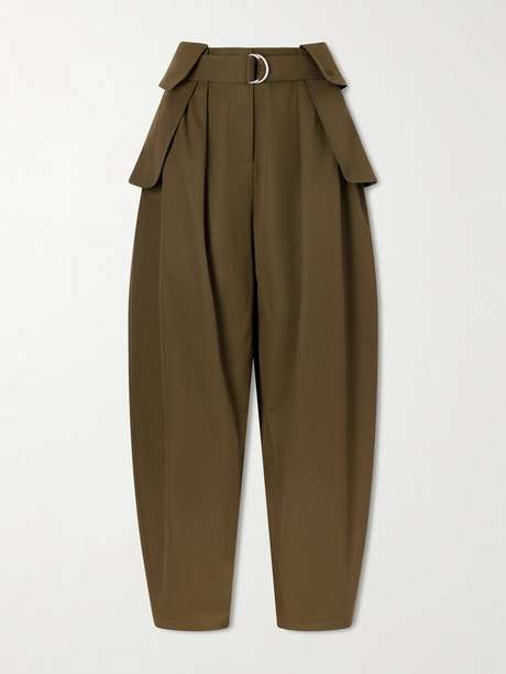 LOEWE Pantalon large en coton et soie mélangés à plis et à ceinture