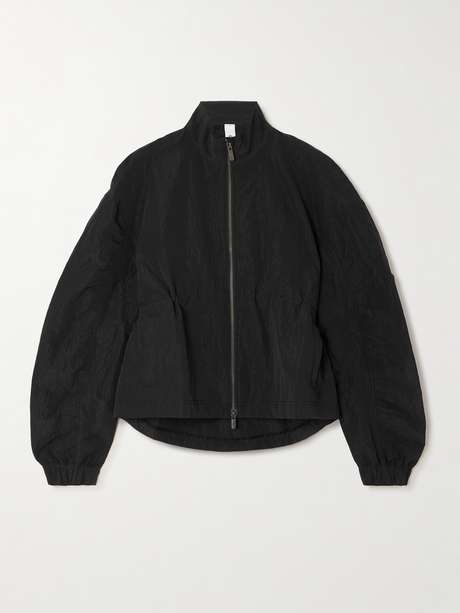 Cette veste signée lululemon est munie de fermetures serre-cordon élastiquées qui vous permettront de moduler sa silhouette en fonction de votre programme : faire un jogging ou des courses, par exemple. Elle est réalisée à partir d’un tissu technique froissé étonnamment doux, et possède un col droit.