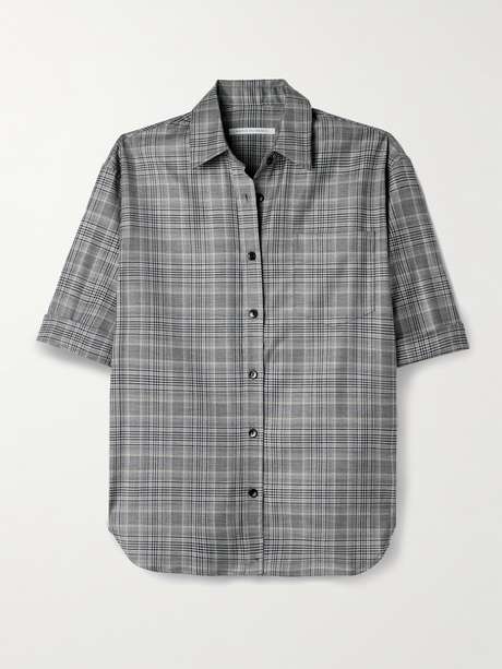 Cette chemise Maria McManus emprunte ses lignes au vestiaire masculin. Elle est confectionnée en laine mélangée légère, s’habille de carreaux et adopte une coupe oversize mise en valeur par de larges manches raccourcies à revers.