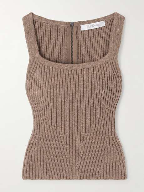 Ce débardeur Max Mara était accompagné d’une ceinture et de la jupe assortie Bellico, disponible dans notre sélection, lors du défilé automne-hiver 2025 de la marque. Il est réalisé en laine notamment mélangée à une dose de cachemire, adopte une coupe près du corps mise en valeur par son fini côtelé, et présente un décolleté carré chic. Sa fermeture zippée apparente au dos lui donne une touche de caractère inattendue.