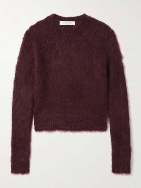 Ce pull Max Mara, tricoté en Italie à partir de mohair mélangé duveteux, est aussi doux et confortable qu'il en a l'air. Sa teinte bordeaux intense ajoutera de la profondeur à vos tenues, des pièces de tailleur neutres aux jeans foncés.