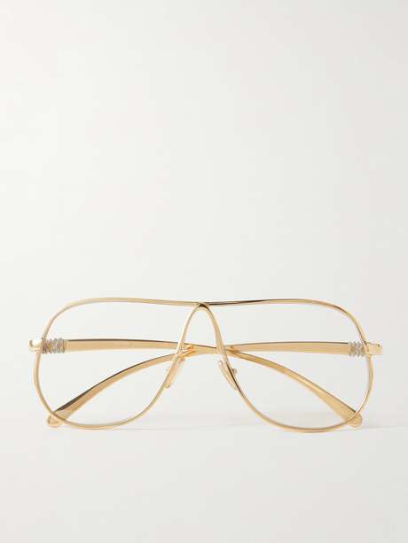 Ces lunettes de vue Miu Miu sont équipées de filtres anti-lumière bleue, censés réduire le risque de fatigue oculaire et de migraines. Elles sont pourvues d’une monture aviateur en métal doré et dotées de plaquettes de nez rembourrées.