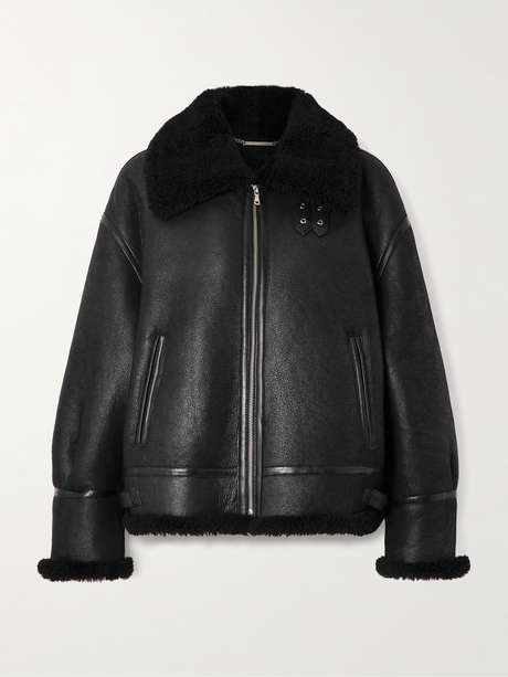 Inspirée des modèles aviateur classiques, cette veste Nour Hammour est réalisée en peau lainée dont l’envers duveteux dépasse du col, des poignets et de l’ourlet. Elle donnera de l’allure à toutes vos tenues.