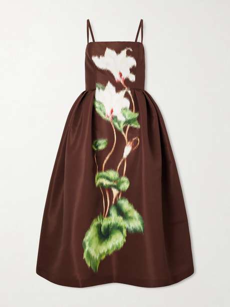 OSCAR DE LA RENTA Robe midi en faille à imprimé fleuri et à plis