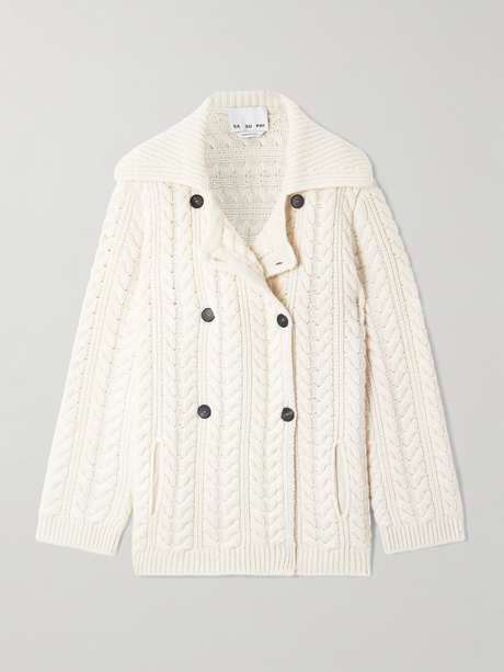 Ce cardigan signé SASUPHI est particulièrement doux : il est en effet tricoté à partir de laine mérinos et de cachemire mélangés formant des mailles torsadées à la somptueuse texture. Il est doté d’un col italien et présente un devant à double boutonnage qui lui confère davantage de sophistication.