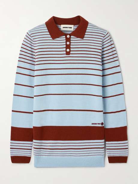 Ce polo long signé SHUSHU/TONG est tricoté de rayures horizontales qui créent un effet architectural tendance. Il est réalisé en mailles agrémentées d’une dose de laine isolante et doté de trois boutons en nacre sous son col classique.