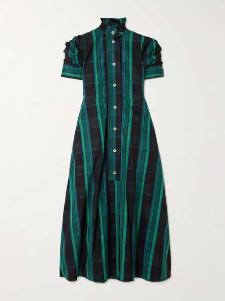 Le col volanté et les manches ballon de la robe Venetia de Thierry Colson font référence aux chemises de nuit de l’époque édouardienne. Cette pièce est réalisée en popeline de coton, revêt un motif tartan et présente une silhouette ample et légère. Accompagnez-la d’une paire de ballerines.