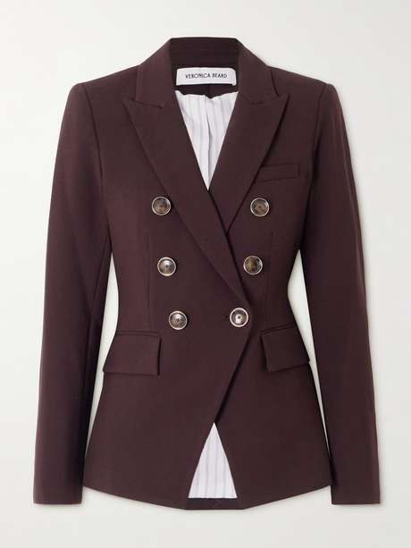Pièce classique chez Veronica Beard, le blazer Miller Dickey a été actualisé dans une teinte chocolat, idéale pour la saison qui se profile à l’horizon. Ce modèle est fabriqué à partir d’un tissu agrémenté d’une touche de stretch et présente deux rangées de boutons effet écaille. Il se caractérise par ses revers en pointe remarquables, et se voit rehaussé de poches à rabat.