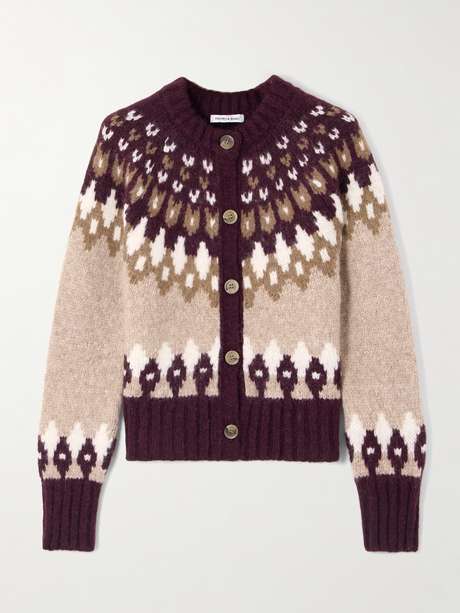 Que vous vous évadiez à la campagne ou en montagne, le cardigan Christina de Veronica Beard vous gardera bien au chaud. Il est réalisé à partir d’alpaga mélangé douillet et tricoté d’un motif d’inspiration Fair Isle classique. Sa coupe légèrement ample vous permettra de l’enfiler facilement par-dessus d’autres pièces.