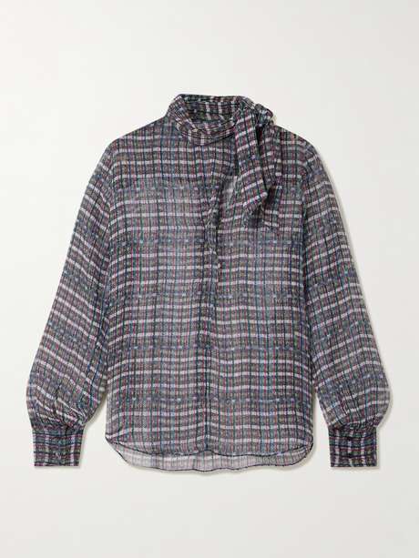 La blouse Geona d’Isabel Marant retranscrit à merveille l’énergie subversive qui émanait du défilé automne-hiver 2025 de la marque. Elle est réalisée à partir d’un crépon de soie à carreaux semblable à du tweed, possède un fini semi-transparent et présente des manches bouffantes agrémentées de plis ainsi qu’un col noué. Tirez parti de son allure punk en lui associant des pièces en jean ou en cuir tout aussi rebelles.