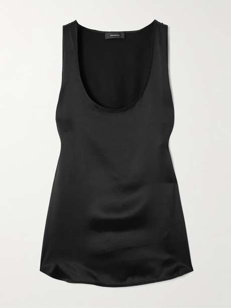 Les collections de WARDROBE.NYC capturent l’esprit à la fois chic et décontracté du style urbain. Ce débardeur est réalisé en satin de soie, une étoffe chatoyante qui donne de l’élégance à sa silhouette classique à décolleté arrondi. Il pourra être porté avec un jean comme avec un pantalon large.