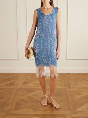Robe midi en satin de soie à broderies et à franges Worcester