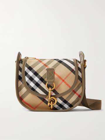 Sac porté épaule en toile jacquard enduite à carreaux et à finitions en cuir