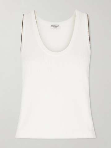 Débardeur en jersey de coton côtelé à broderie