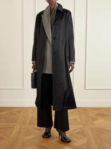 Double-breasted scarf-detailed layered wool and cashmere-blend coat