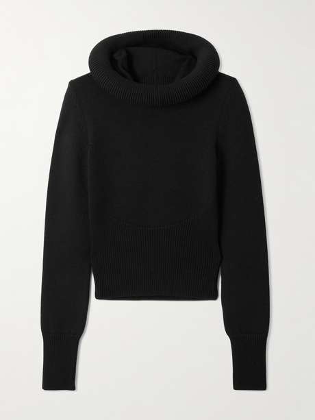 Ce pull signé Alaïa rend hommage aux créations sculpturales et savamment pensées du regretté fondateur de la marque. Il est confectionné en laine douce et caractérisé par un col rond structuré, que vous pourrez porter comme une capuche ou autour de votre cou afin de mettre votre visage en valeur.